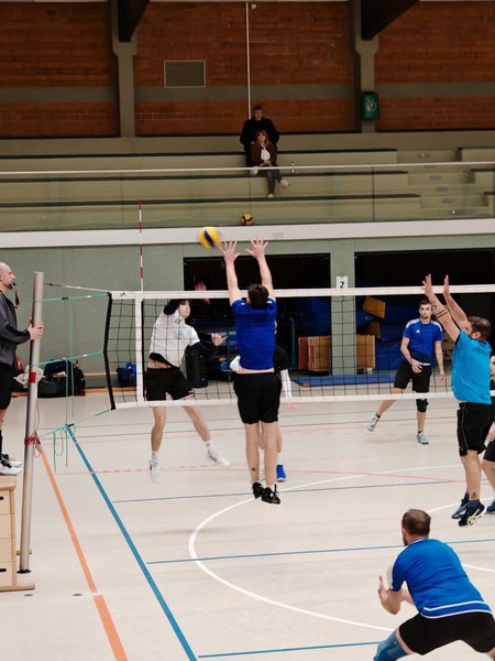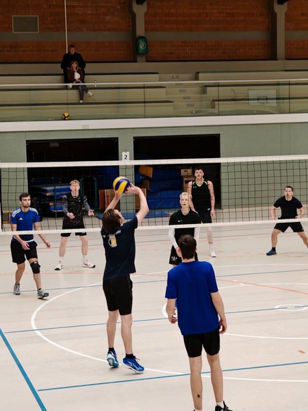 Angereist mit sechs Spielern und zwei Nachwuchskräften (davon einer gerade vier Wochen Volleyballerfahrung), trafen wir auf ein Team mit 15 Spielern, wovon 12 eingesetzt wurden. Dieser Vorteil zeigte sich später im Spiel.