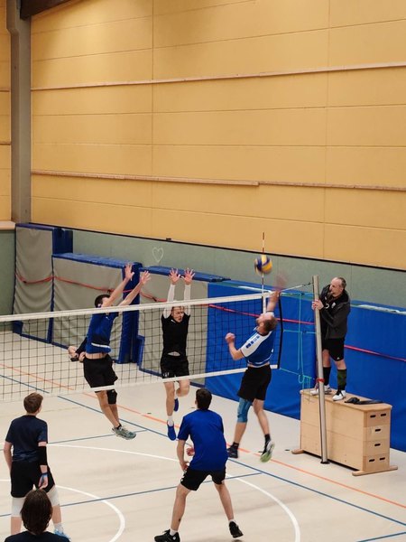 Saubere Annahme und ein guter Block brachten dann den 25:23 „Auswärtssieg“ der Ballschubser.